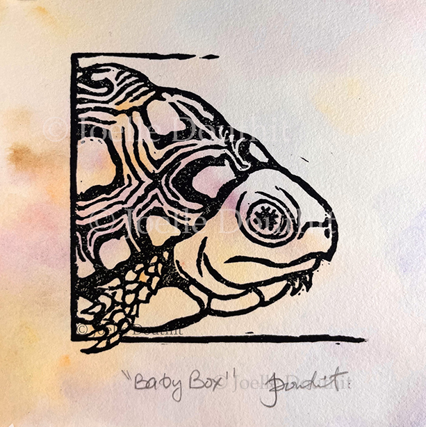 Our backyard gets semi-frequent box turtle visits, and this print was inspired by an especially tiny visitor who gave me the judgemental stare as we greeted him.