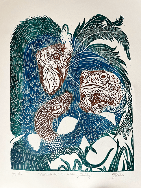 Cockatrice: An Unlikely Family, E.V. 2025, Edition of 3, Available Image 8″ x 10″
